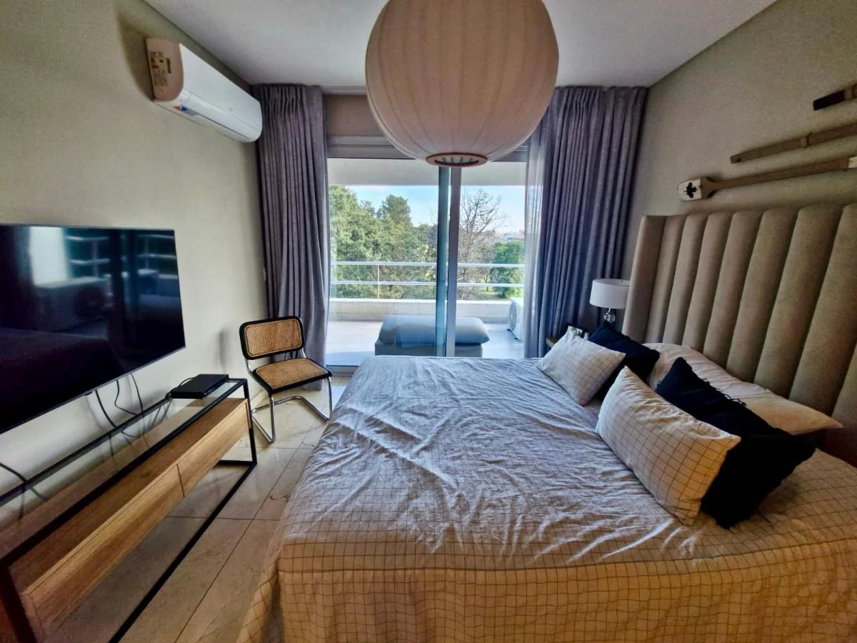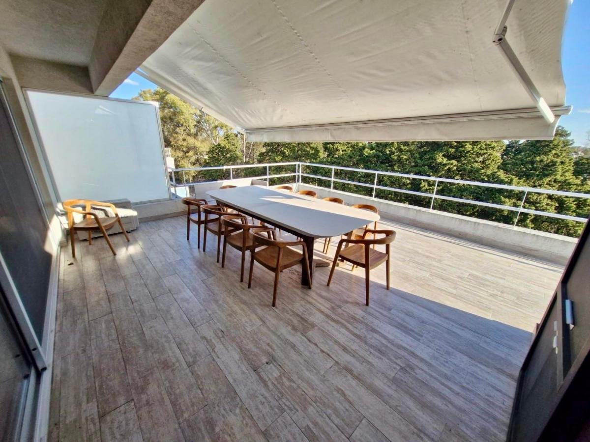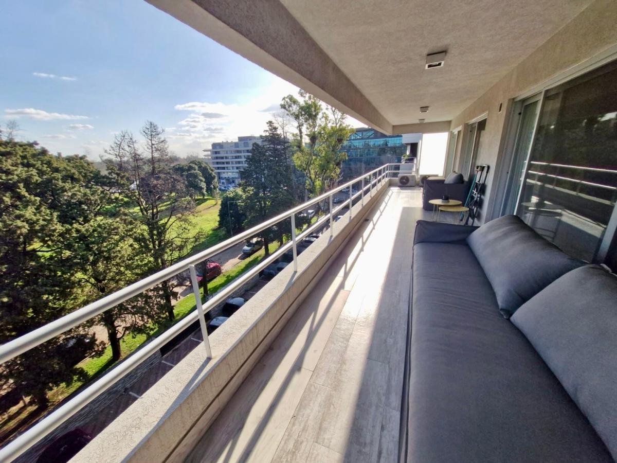 Excelente departamento amoblado de 4 ambientes, con terraza, muy luminoso, amplios ventanales y vistas abiertas a espacios verdes. La unidad cuenta con living comedor, toilette de recepción, placard de recepción y cocina totalmente equipada con muebles de diseño.