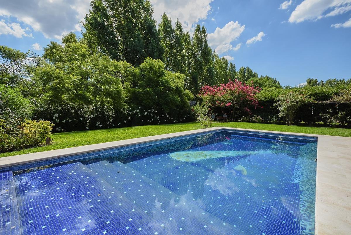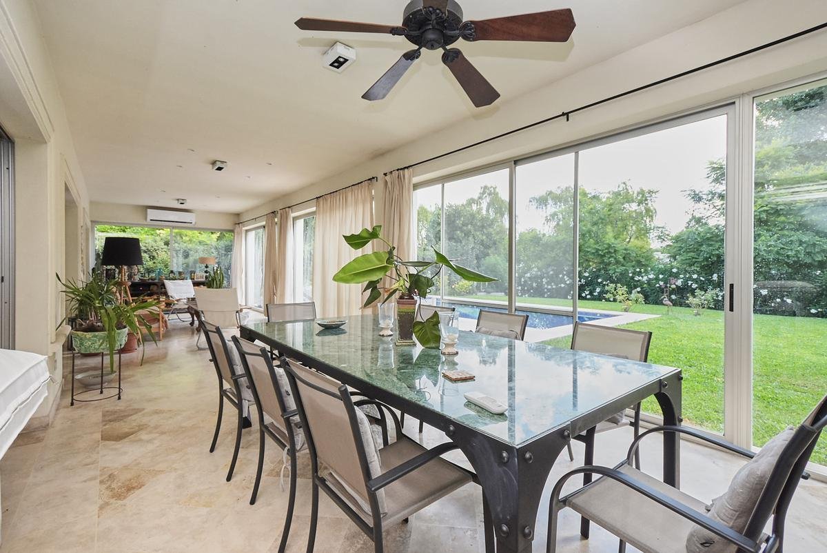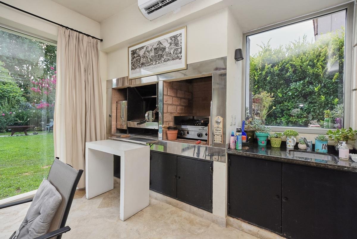galería cerrada con parrilla y anafe a gas, ideal para disfrutar todo el año, piscina revestida en venecitas y una parquización cuidadosamente diseñada, que brinda privacidad, verde y una sensación de disfrute permanente.