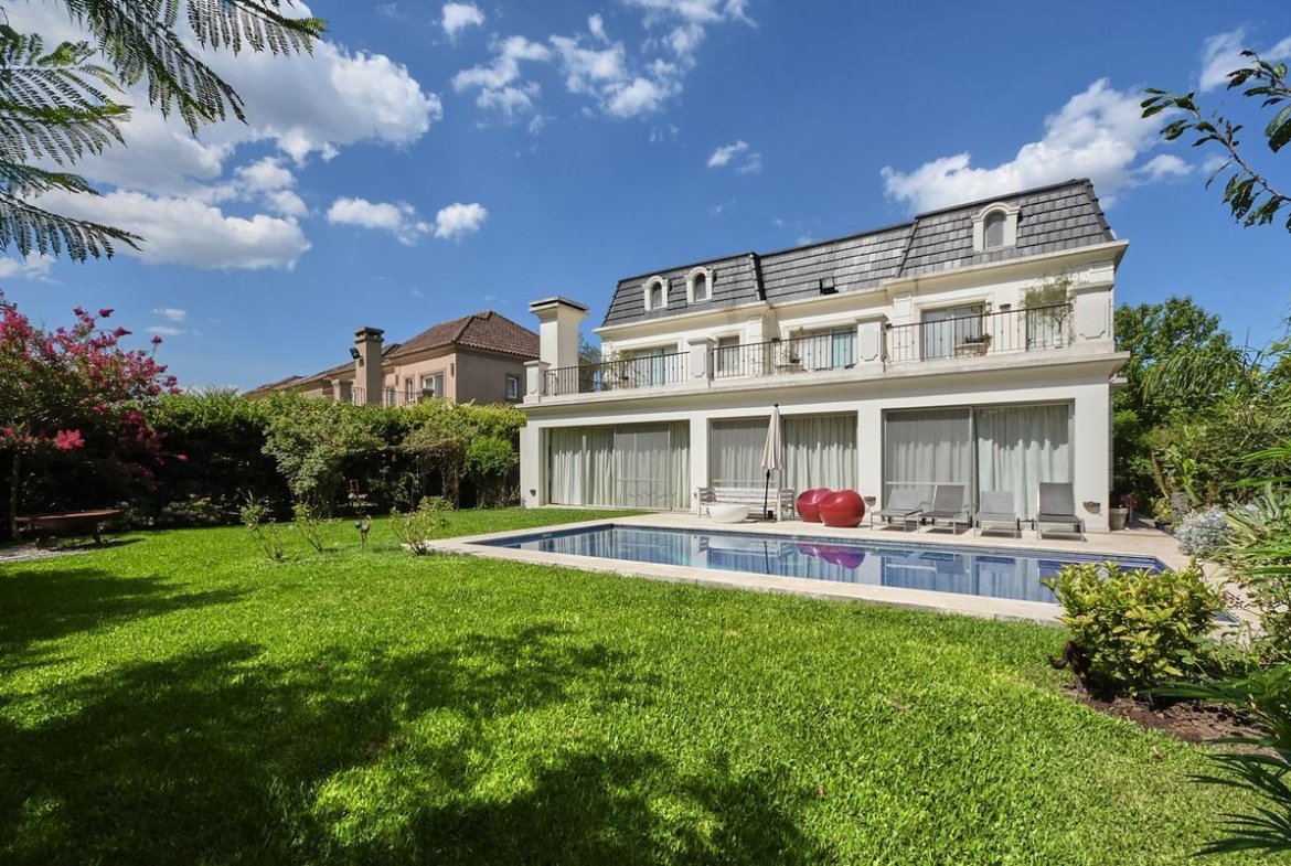 Residencia estilo francés, desarrollada en tres plantas, implantada sobre un lote de 847 m², en uno de los sectores más consolidados y buscados de La Lomada de Pilar.